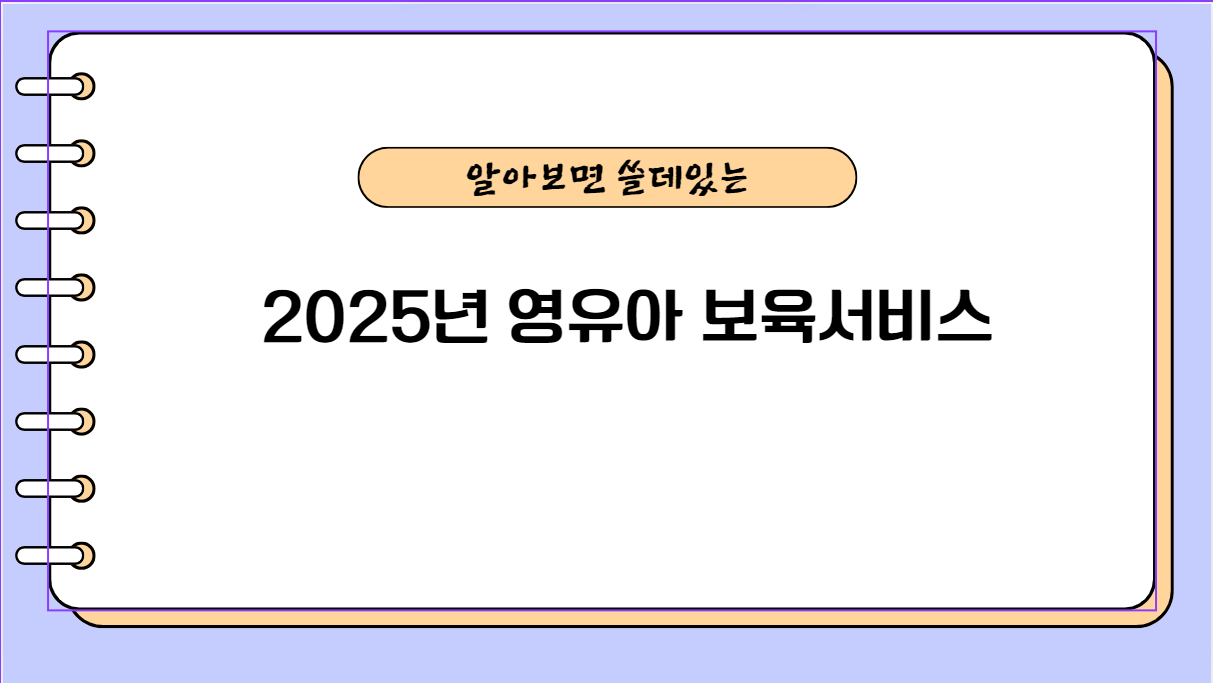2025년 새 학기를 준비하는 부모님들을 위해 영유아 보육서비스 사전신청에 대한 모든 정보를 한눈에 확인할 수 있는 가이드를 준비했습니다. 바쁜 일상 속에서도 놓치지 않고 신청할 수 있도록 꼼꼼히 정리했으니 끝까지 읽어보세요!